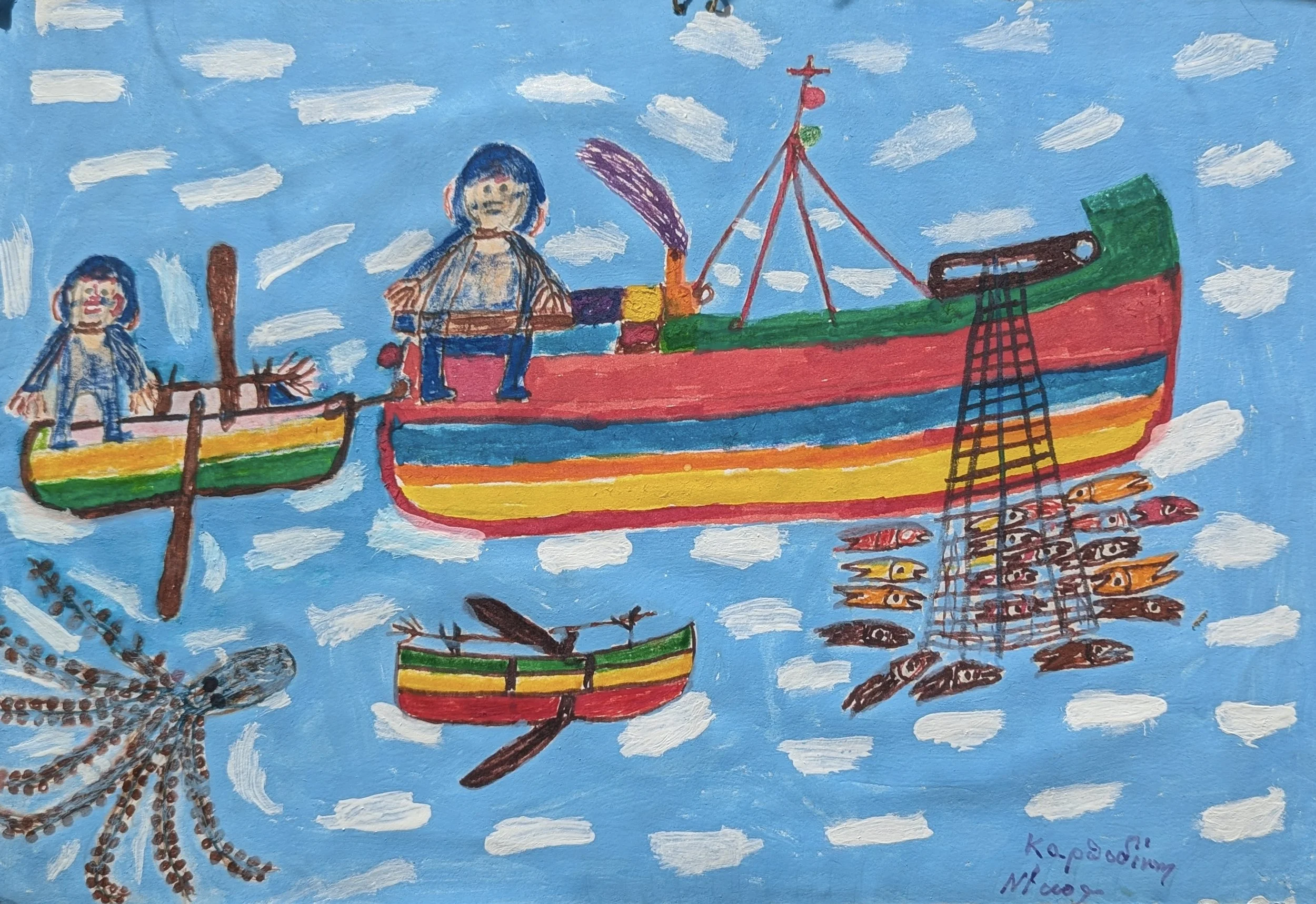 Holland Tunnel Revisited presents Paros Remembered, paintings by Nikos Karpodinis from the Greek Island of Paros. Nikos Karpodinis was a shoemaker who had a colorful little workshop on a back street in the town of Paroikia. When there were no shoes to repair, he made small paintings about daily life in Paros featuring fishing boats, animals, churches, and windmills.